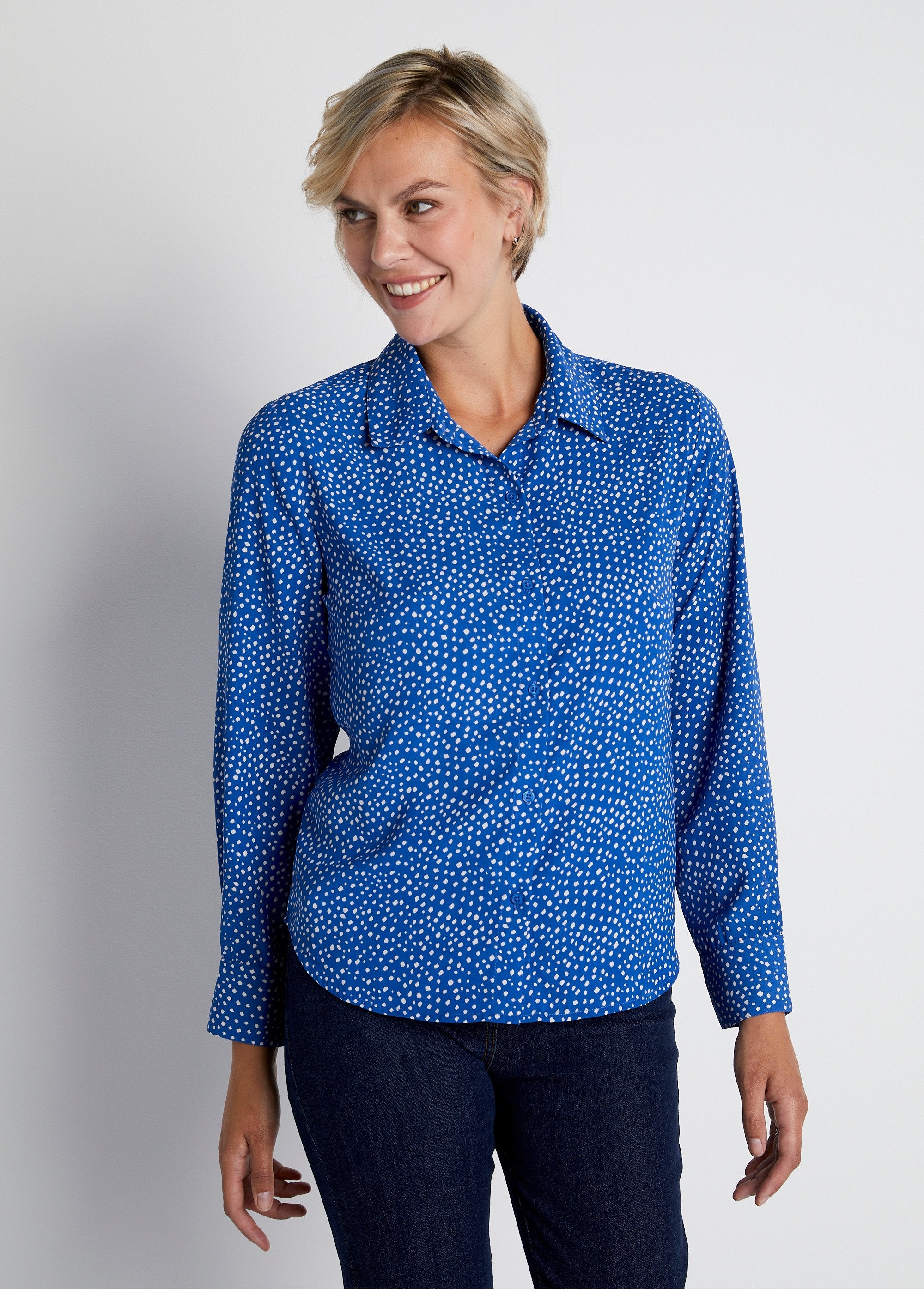 It creates an impeccable look with a skirt or plain pants. An easy-to-wear blouse suitable for all body shapes: slim or round, it enhances the silhouette with its flattering print. Quickly washed, quickly dried, quickly worn: it also benefits from exemplary maintenance.