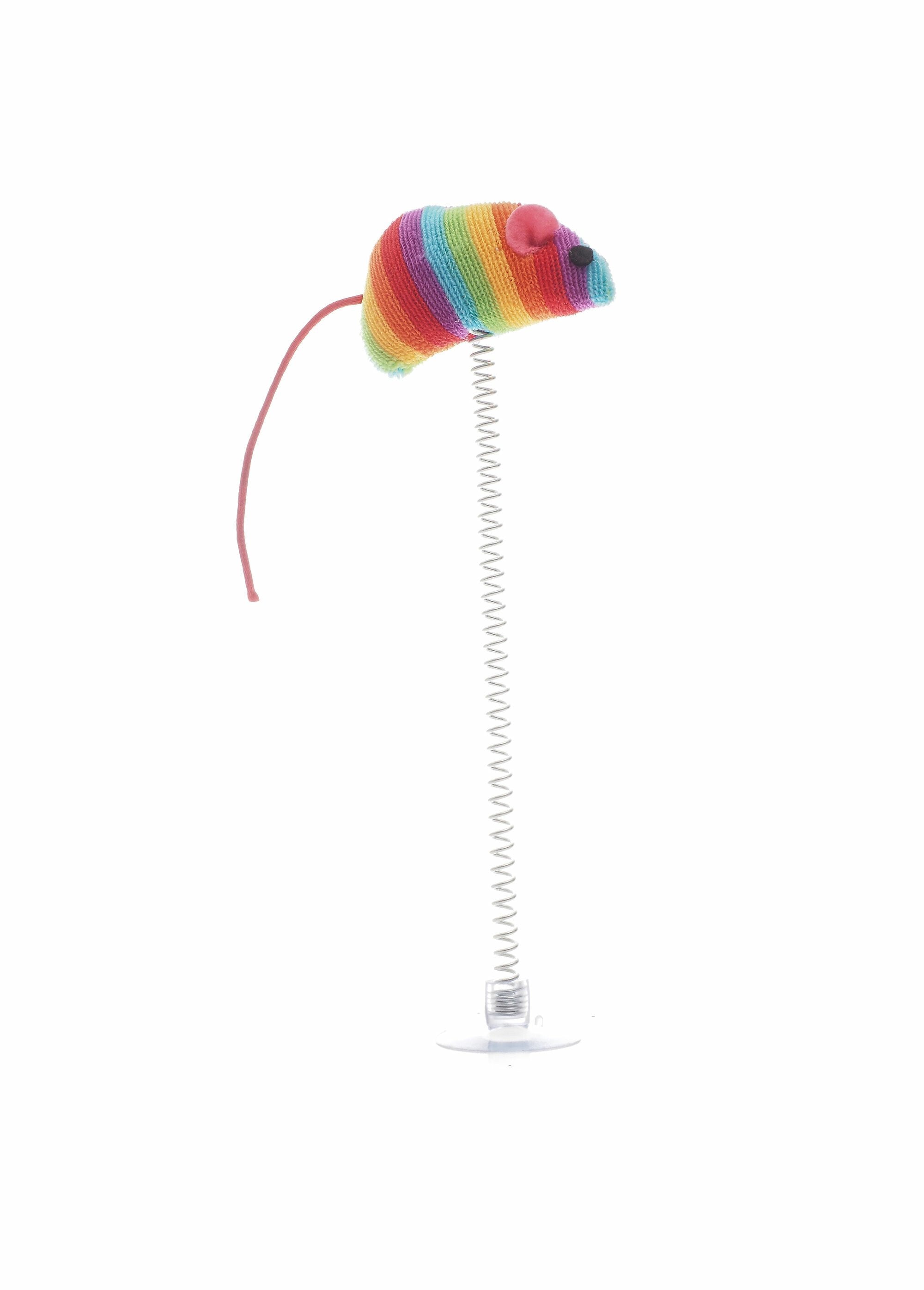 This multi-coloured string mouse, mounted on a suction cup spring, is the perfect toy to awaken your cat's hunting instinct. Easy to attach to a window, wall or even a fridge, it offers hours of distraction and fun. The bouncing motion of the mouse will captivate your feline's attention, stimulating its natural need to play. Essential for your cat's well-being, this interactive toy will help keep it active and happy throughout the day.