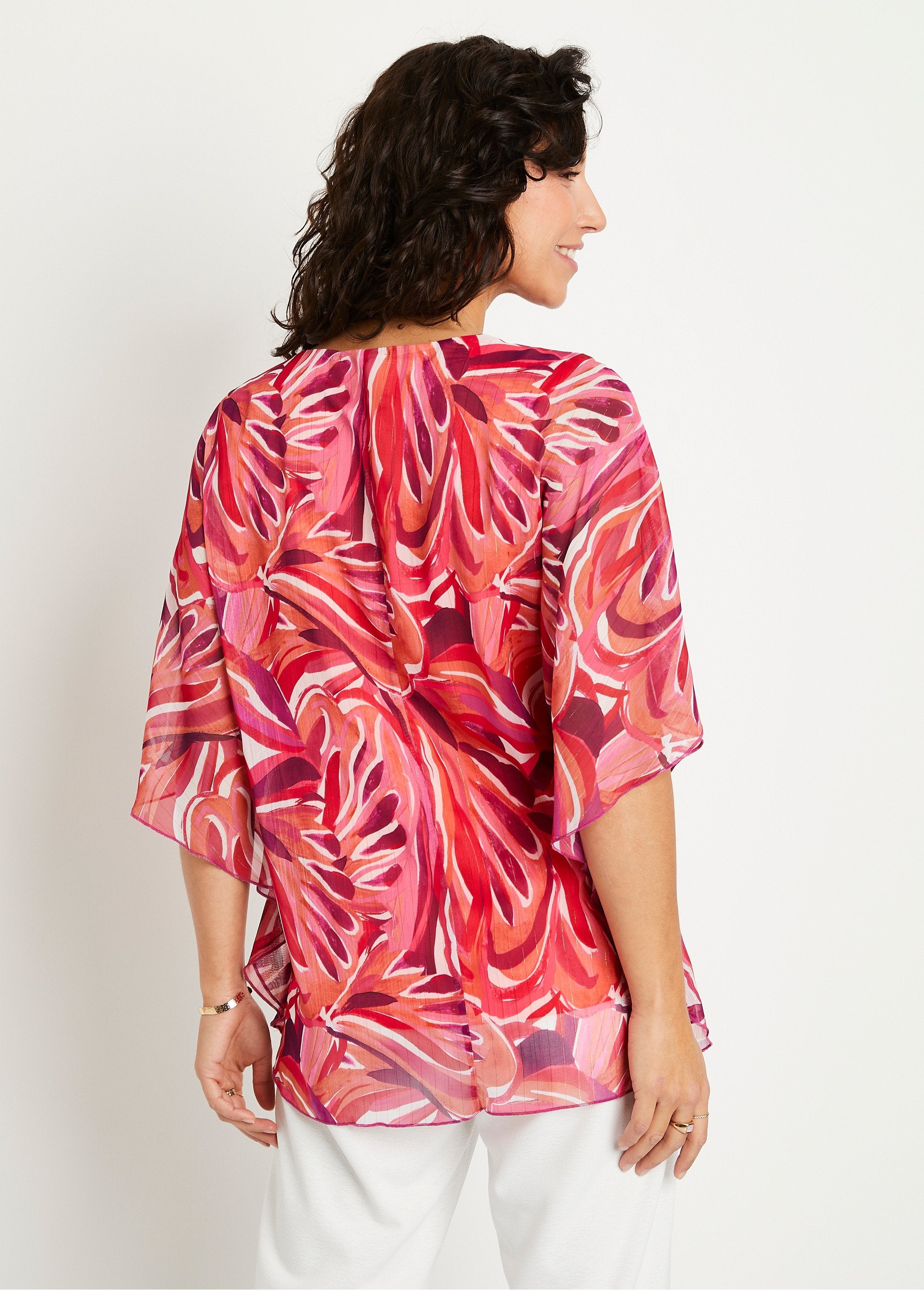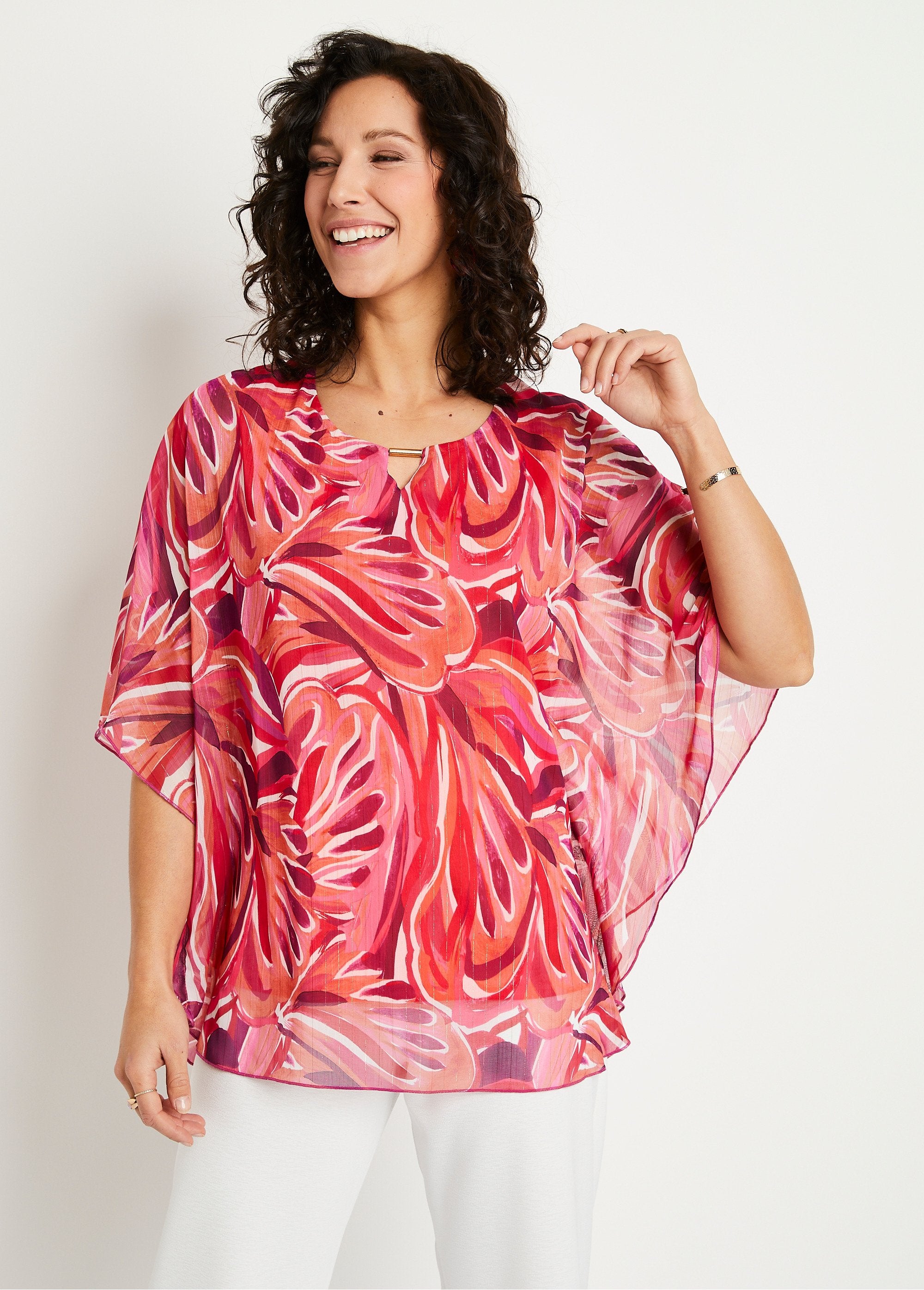 Plant-based, multi-colored, modern: the print stands out to celebrate the elegance of a chic and charming plus-size tunic! Beautiful fullness of the sleeves and fluid cut which covers the upper arms and hides small curves... A very seductive piece to wear with plum pants for a colorful silhouette, or white for a refined moment or a festive occasion.
